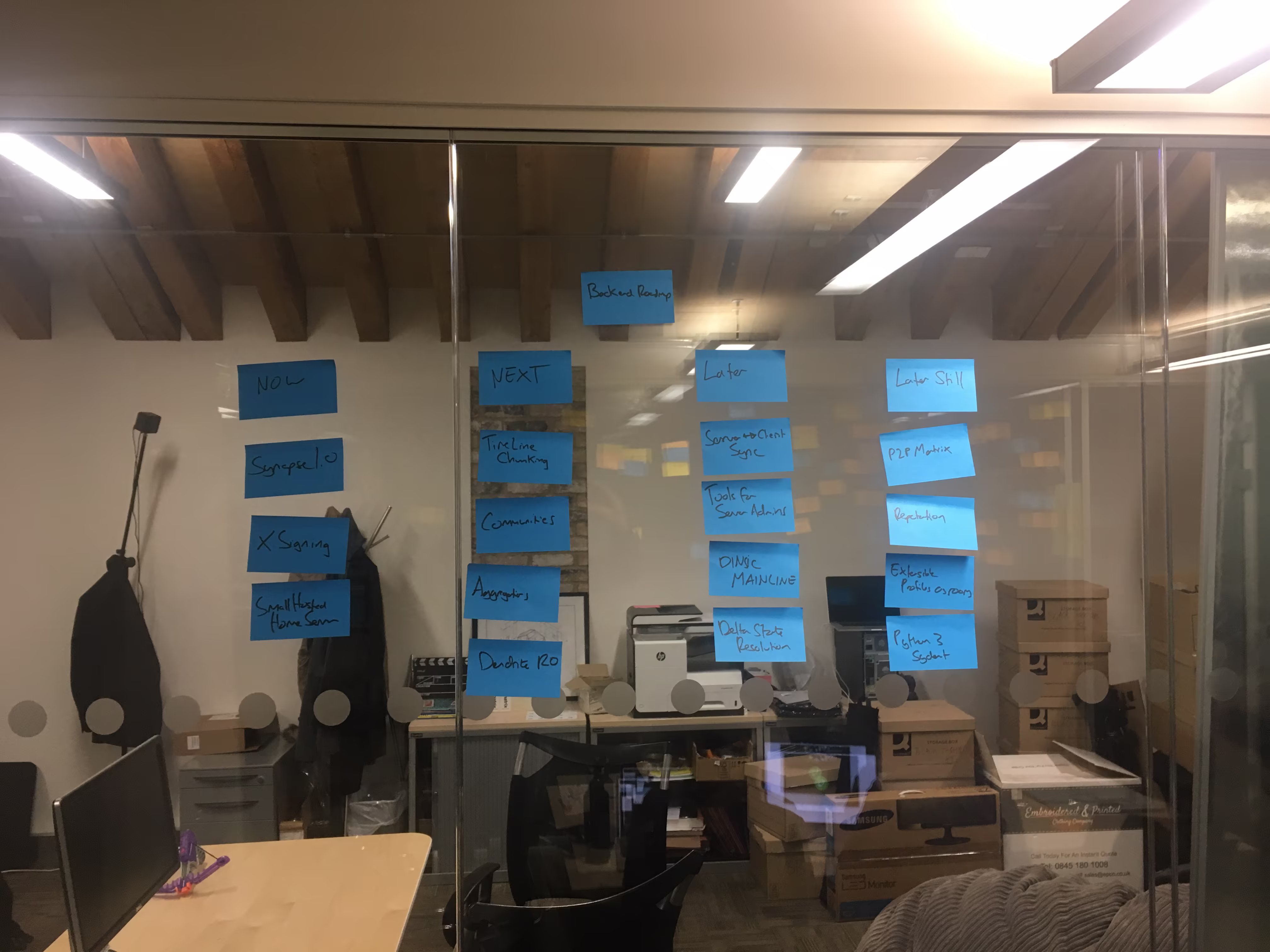 Not at all (it's written in board marker). This is simply a way to express our plan of action and we are likely to make changes to it dynamically. However, this means that at any given moment, if someone wants to know what we are working on then the roadmap is the place to go.